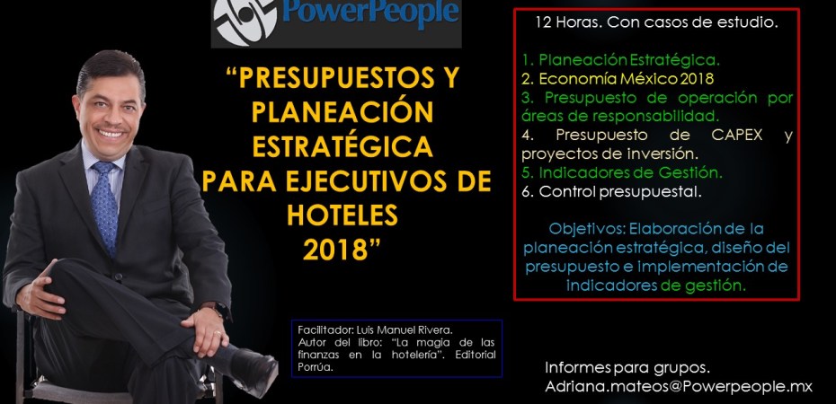 21 agosto, 2017 LUIS MANUEL RIVERA Seminario de Presupuestos y Planeación Estratégica para ejecutivos de hoteles. Puedes compartirlo en: Compartir en X (Se abre en una ventana nueva) X Comparte en Facebook (Se abre en una ventana nueva) Facebook Compartir en WhatsApp (Se abre en una ventana nueva) WhatsApp Compartir en LinkedIn (Se abre en una ventana nueva) LinkedIn Compartir en Threads (Se abre en una ventana nueva) Threads Me gusta Cargando... Relacionado