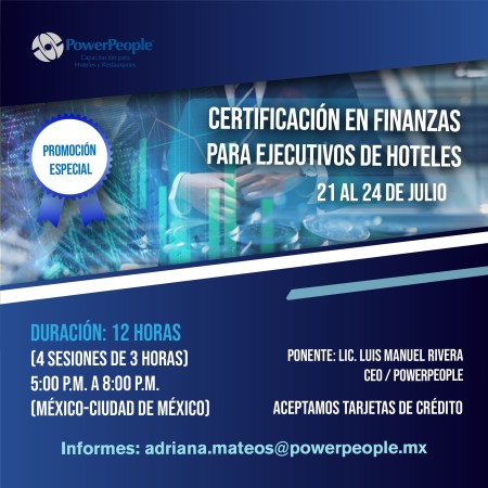 Certificación en Finanzas ejecutivos Hoteleros 100% línea. Julio 2020