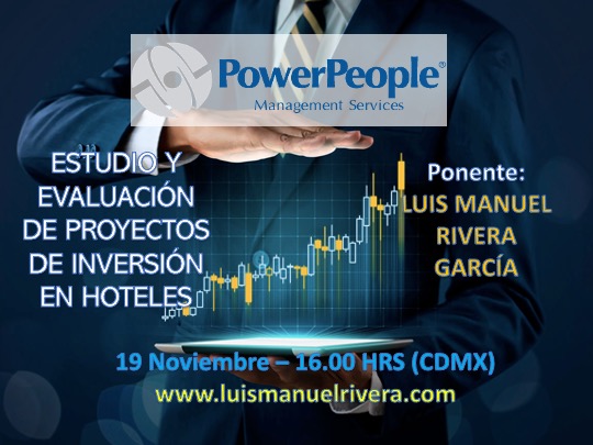 Te invitamos a que nos acompañes a la conferencia Magistral por LUIS MANUEL RIVERA, » TIPOLOGÍA DE PROYECTOS DE INVERSIÓN EN HOTELES».