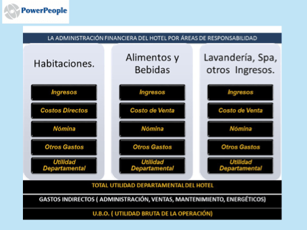 Estos términos son muy comunes en el ámbito Hotelero, y para muchos resulta un tanto complicado, por lo que empezaremos por definir cada uno de estos conceptos: GOP.- Gross Operating Profit y en español Utilidad Bruta de Operación, que es producto de restar al total de los ingresos los costos directos, nómina, gastos directos de operación y gastos indirectos, este indicador financiero mide la rentabilidad y el desempeño de los gerentes de área, desde ventas, alimentos y bebidas, división cuartos, administración, promoción y publicidad, energéticos, prácticamente están incluidos todos los conceptos operacionales del hotel.