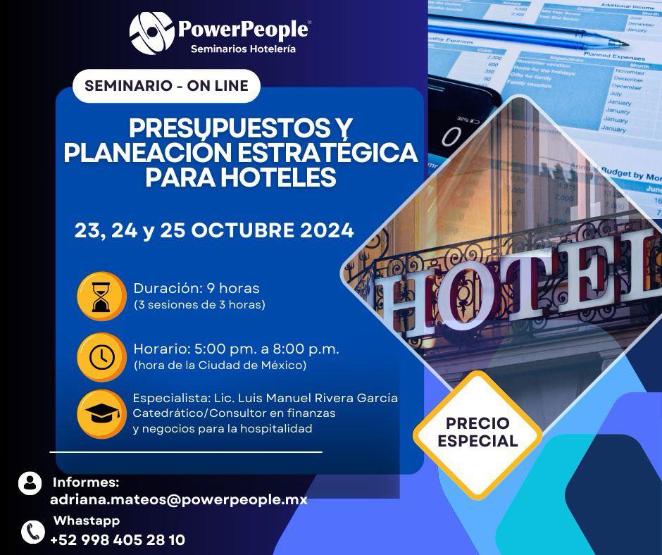 DIRIGIDO A: Contralores, Sub Contralores, Contadores, Gerentes Generales, Gerentes de División Cuartos, Gerentes y Asistentes de Alimentos y Bebidas, Gerentes y Asistentes de Animación, Gerentes de Recursos Humanos, Gerentes de Capacitación.