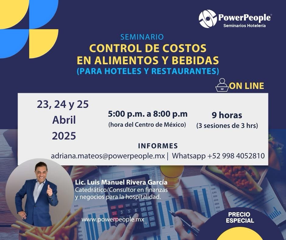 Te invitamos a este magno evento On LINE, dinámico y actualizado. 100% aplicable a la realidad de hoteles y restaurantes.