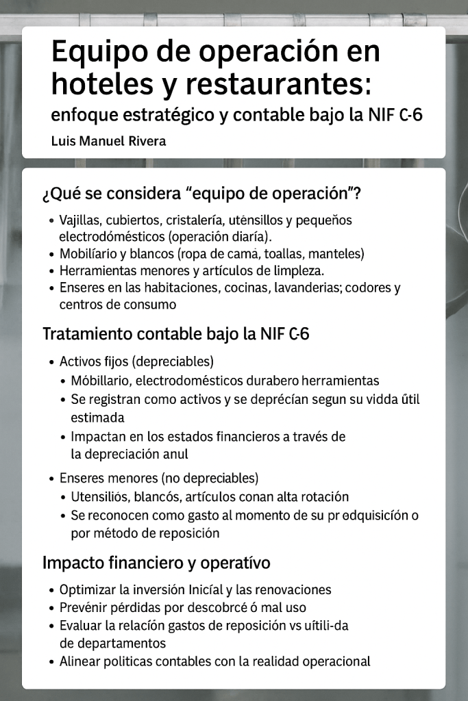 Equipo de operación en hoteles y restaurantes: enfoque estratégico y contable bajo la NIF C-6