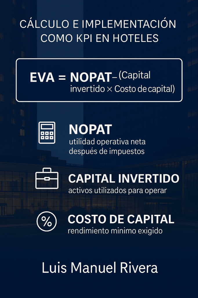El EVA no solo mide cuánto se gana, sino cuánto valor se genera después de cubrir todos los costos, incluyendo el capital. Un hotel con EVA positivo es un hotel financieramente saludable y atractivo para inversionistas.