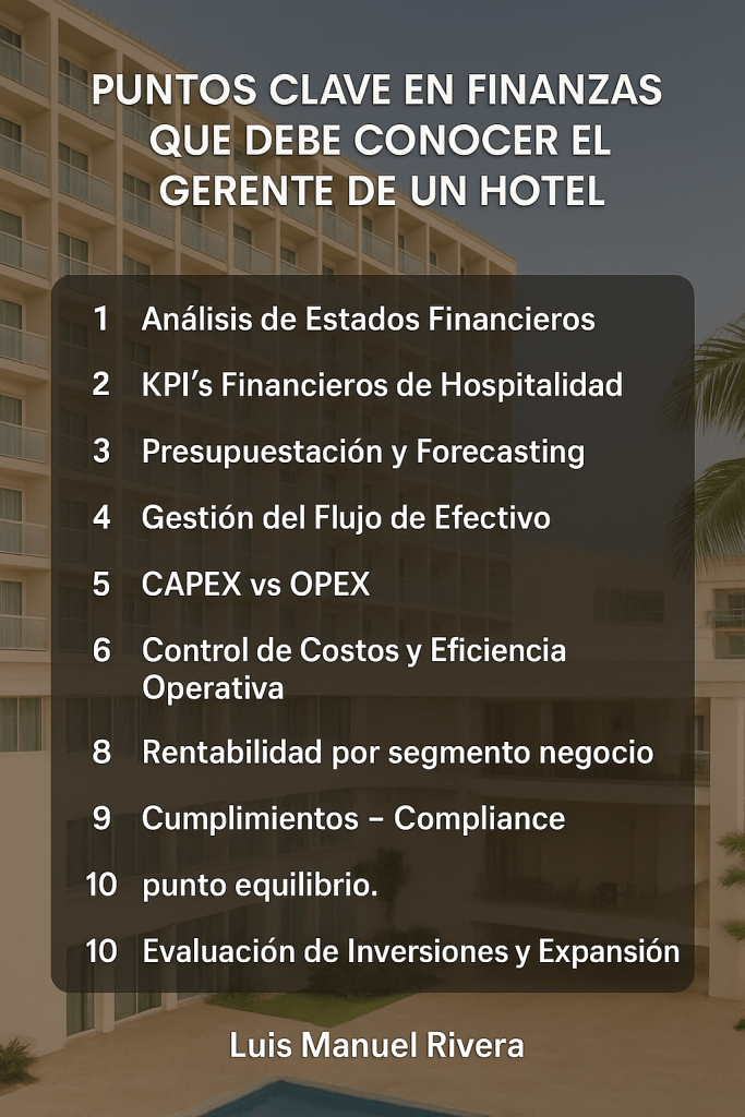 10 Puntos clave en Finanzas que debe conocer el Director o Gerente de un Hotel.