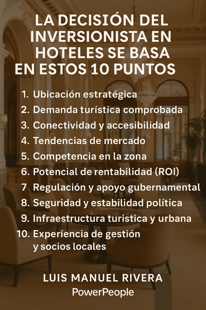 Estos son los 10 factores clave que todo inversionista hotelero considera antes de tomar una decisión: