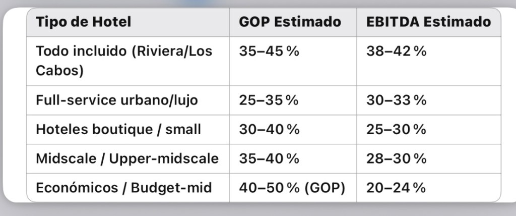 La rentabilidad hotelera puede medirse con dos métricas clave: GOP (beneficio bruto operativo) y EBITDA. A continuación, los márgenes por tipo de operación y su relevancia para inversionistas: