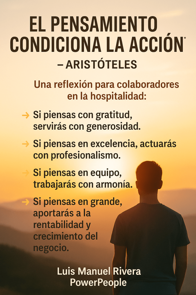 En la hospitalidad, como en la vida diaria, cada gesto cuenta. La sonrisa al recibir a un huésped, la cortesía al servir una mesa, la paciencia al resolver un reclamo… todas estas acciones tienen un origen: el pensamiento.