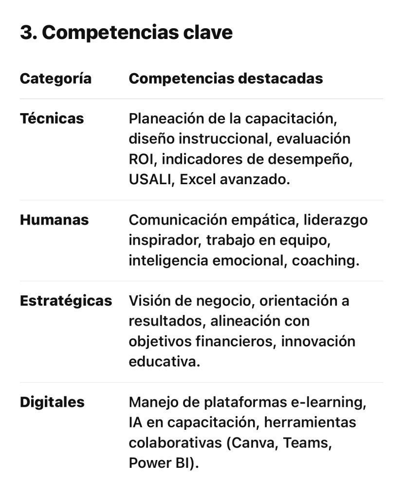 Deseable: Maestría en Desarrollo Organizacional, Gestión del Talento o MBA. Experiencia mínima: 3–5 años en áreas de capacitación, desarrollo humano o entrenamiento operativo en hoteles o cadenas.