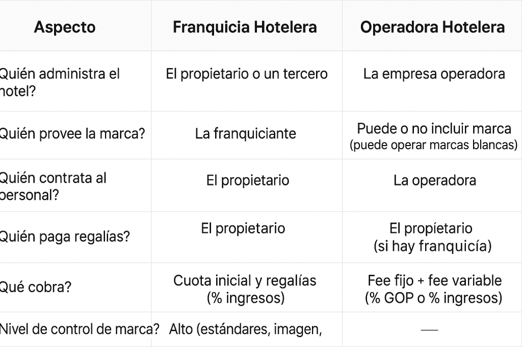 La diferencia entre una operadora hotelera y una franquicia hotelera es clave para entender los distintos modelos de negocio en la industria de la hospitalidad.