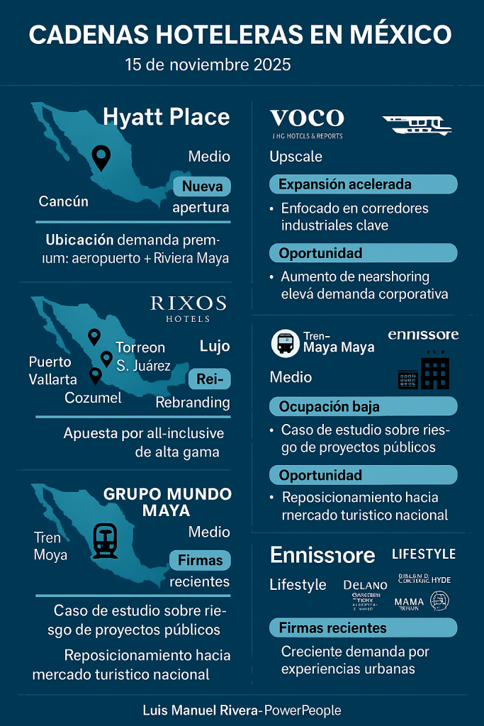 Para tus análisis en Ciudad Juárez, es especialmente importante: IHG aprovecha la demanda corporativa creciente, lo que valida tu línea de contenido sobre oportunidades del nearshoring en el norte del país.