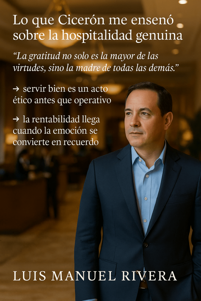 Curiosamente, uno de los mayores maestros que me ha ayudado a entender esto no viene del mundo hotelero, sino de la filosofía clásica: Marco Tulio Cicerón.