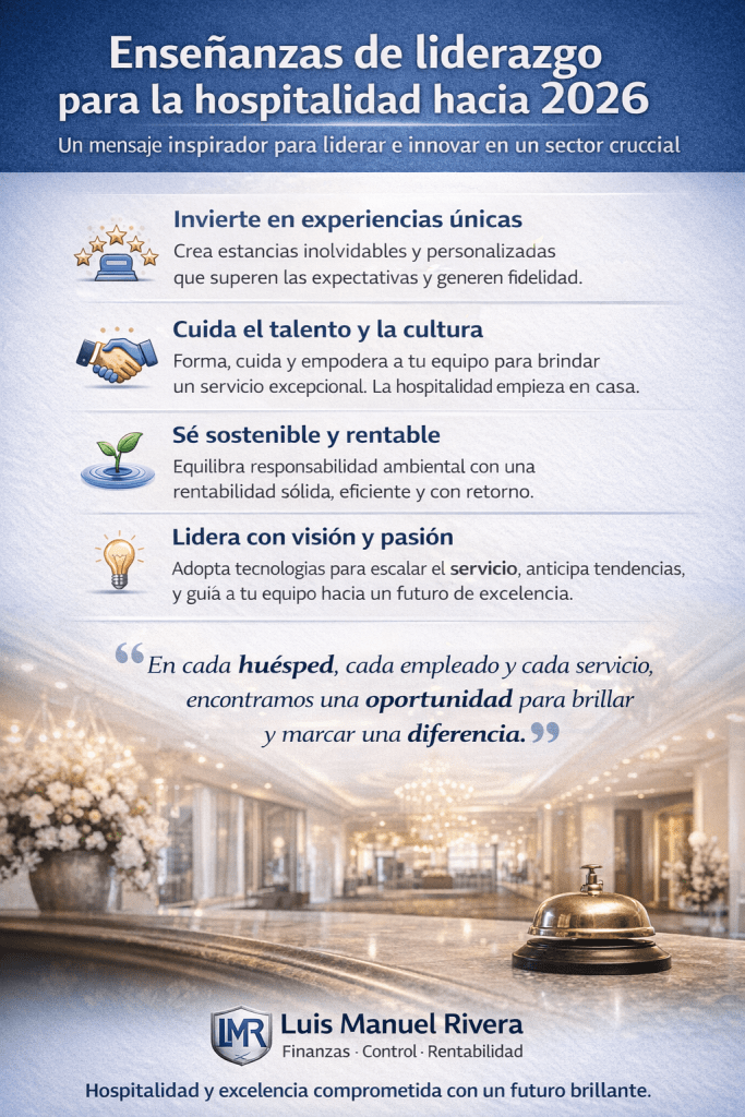 El liderazgo hotelero del presente —y del futuro— exige:• Cabeza fría para analizar, decidir y corregir. • Corazón firme para no olvidar que trabajamos con personas. • Visión estratégica para equilibrar experiencia, rentabilidad y sostenibilidad.