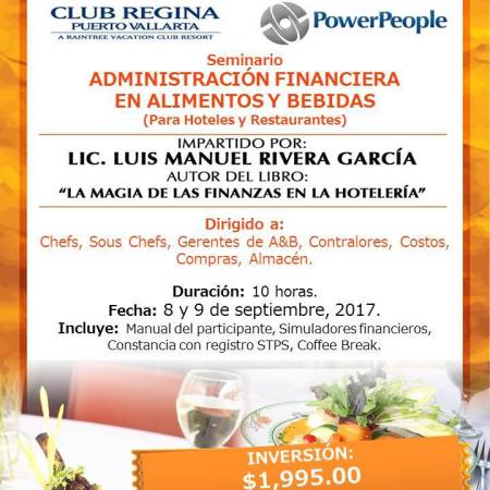 Seminario Administración financiera en Alimentos y Bebidas. Cuernavaca, Morelos. 27 y 28 julio 2017.