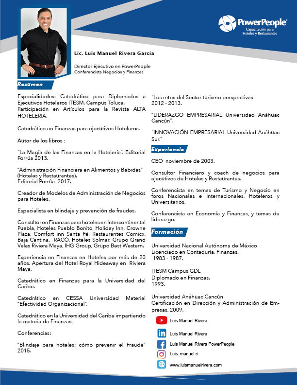 Autor de libros: «La Magia de las Finanzas en la Hotelería». Editorial Porrúa.